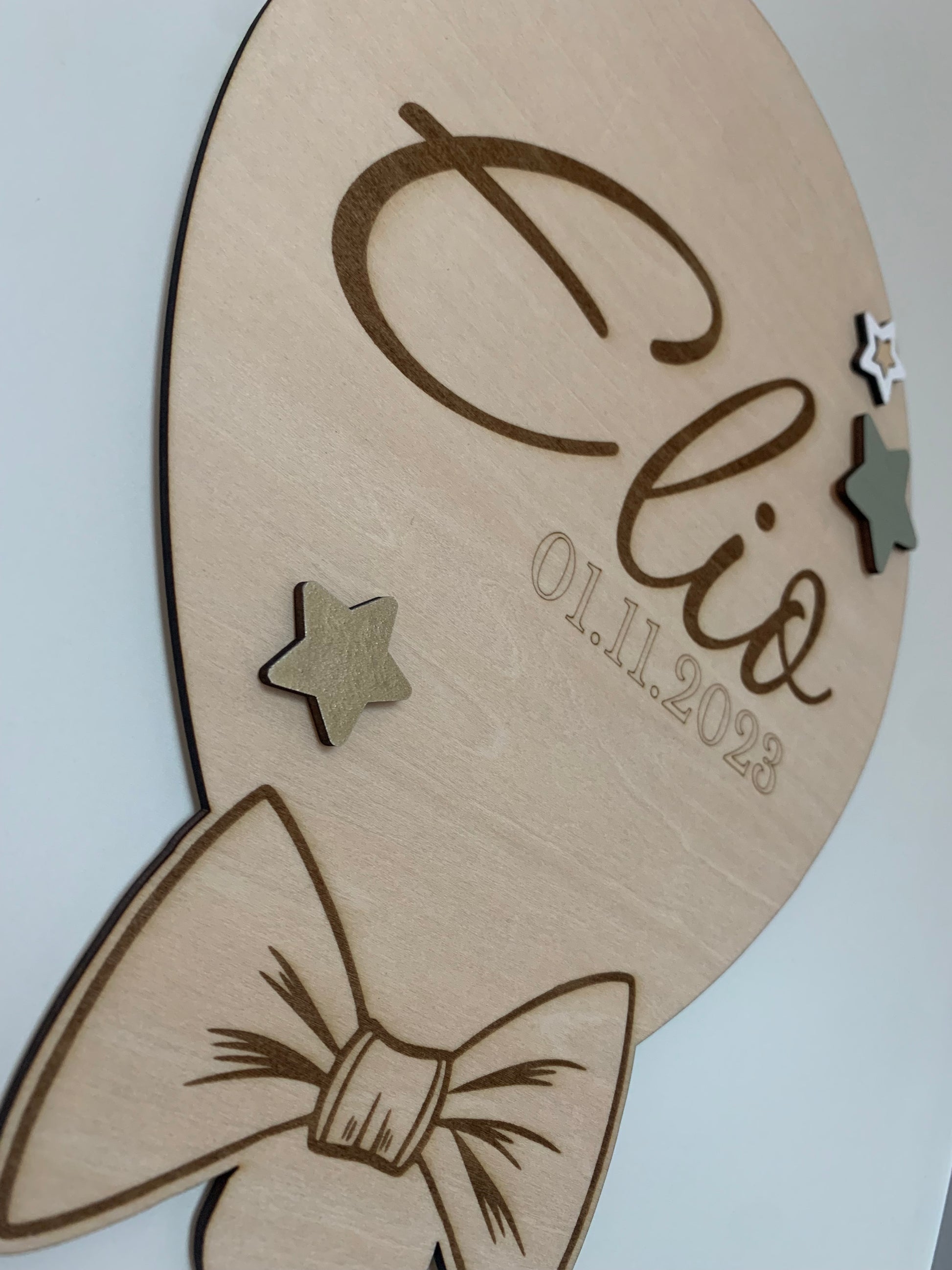Décoration murale Ballon en bois - Personnalisée étoiles