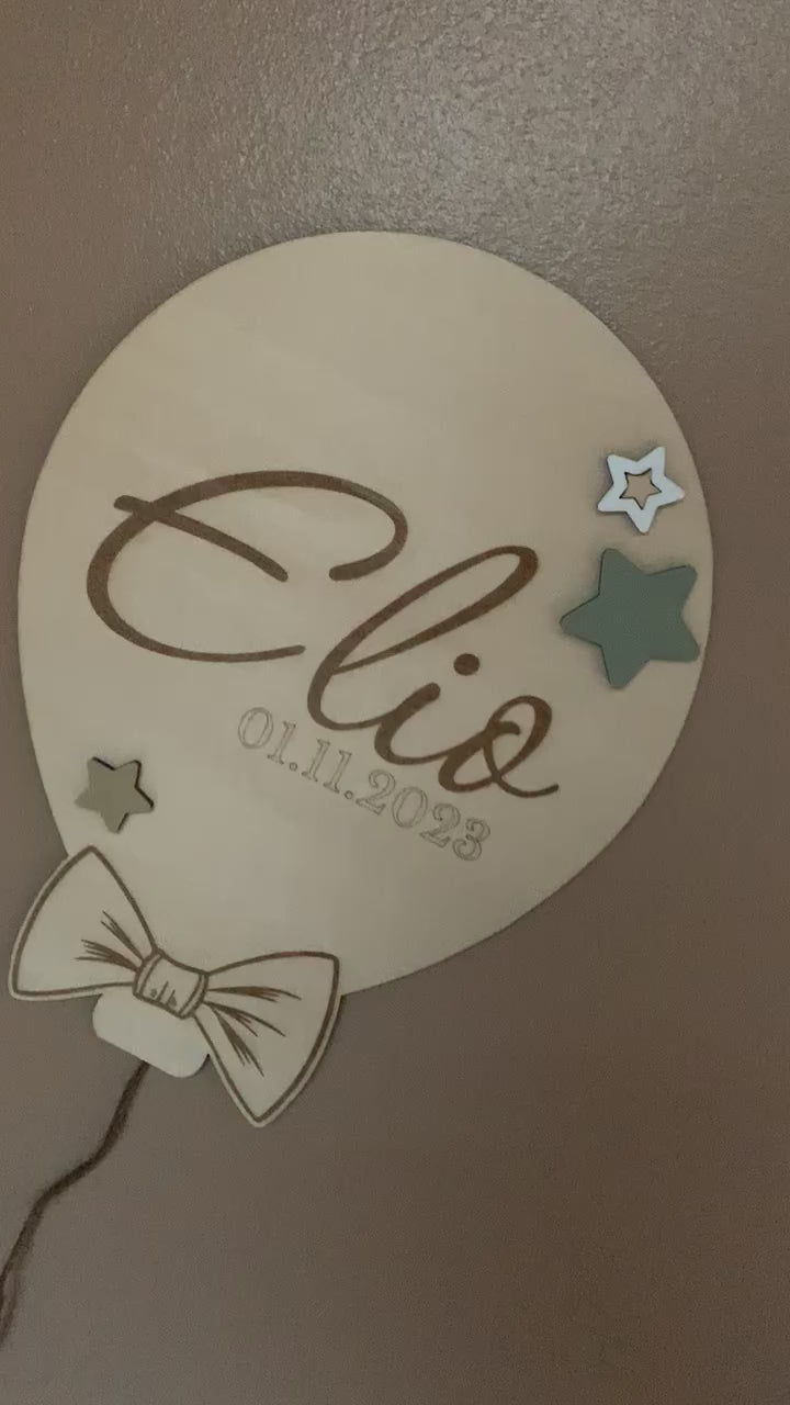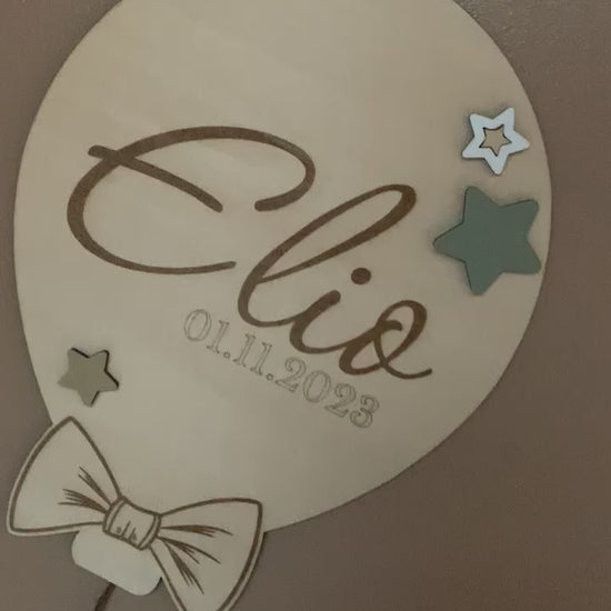 Apportez une touche de poésie et de douceur à la chambre de votre enfant avec cette décoration murale ballon personnalisée . Gravée avec le prénom de l'enfant et sa date de naissance, elle crée une ambiance tendre et chaleureuse, idéale pour un univers enfantin ou bohème.