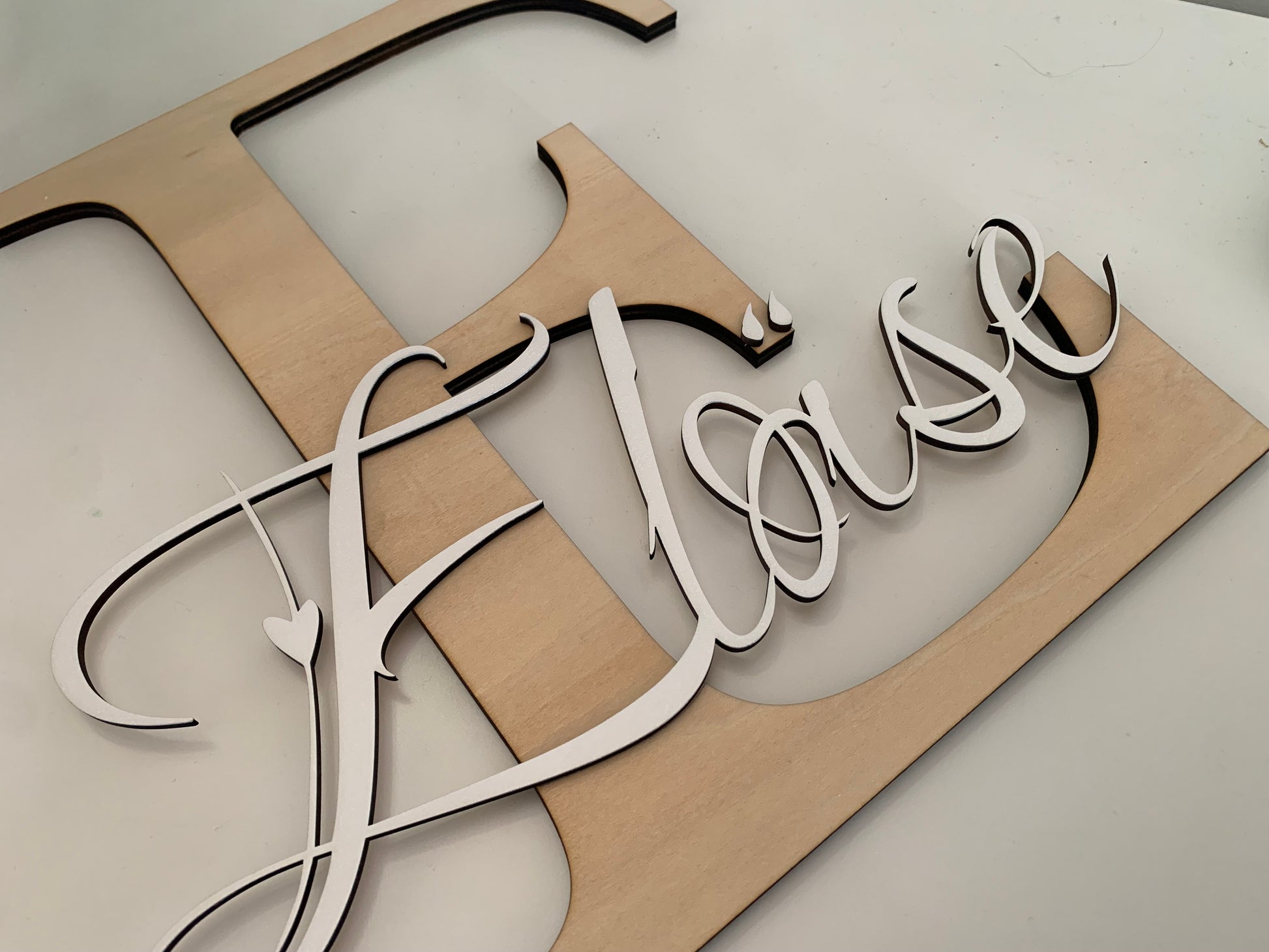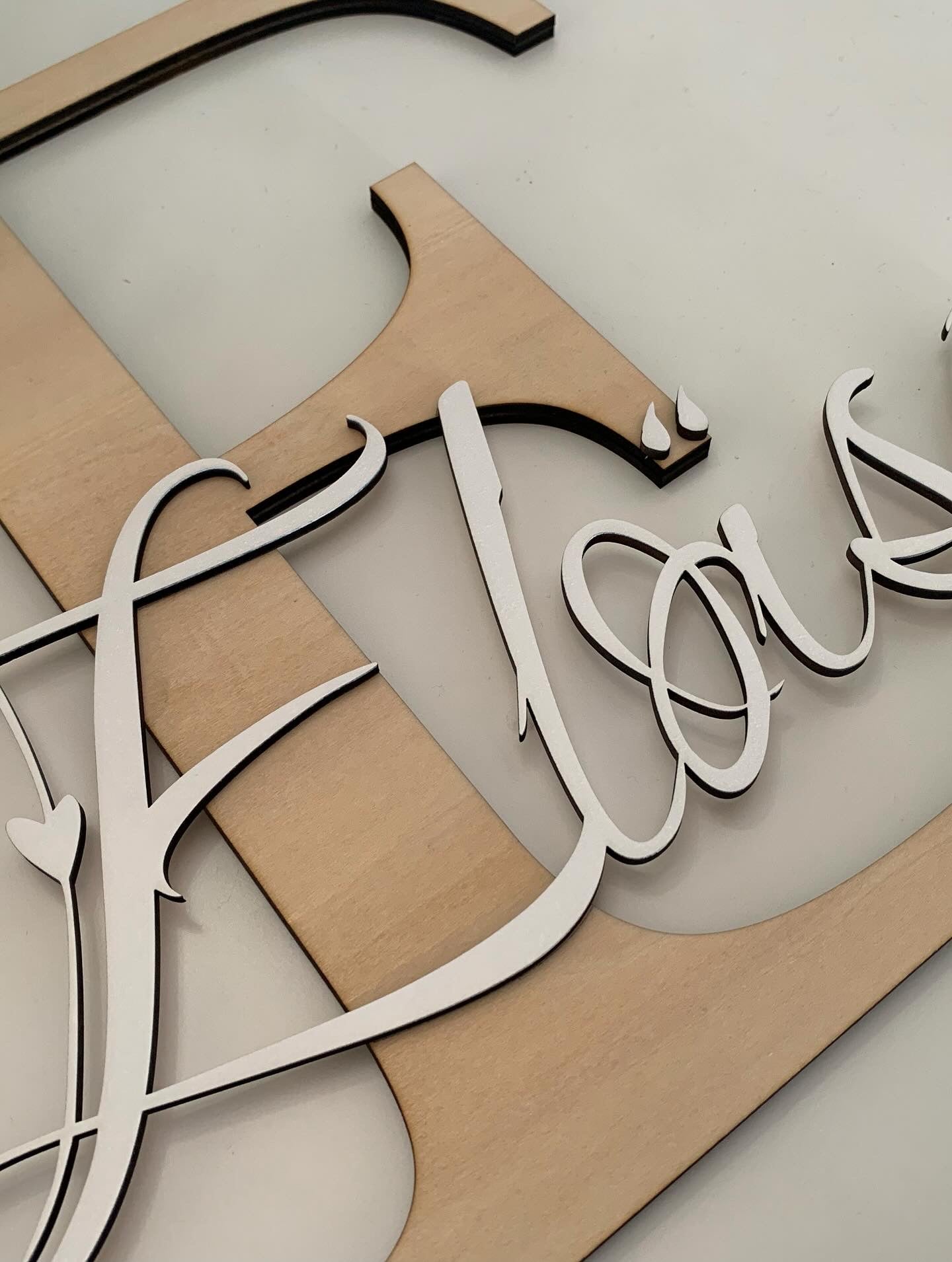 Un prénom en écriture cursive, posé en relief pour un effet 3D élégant