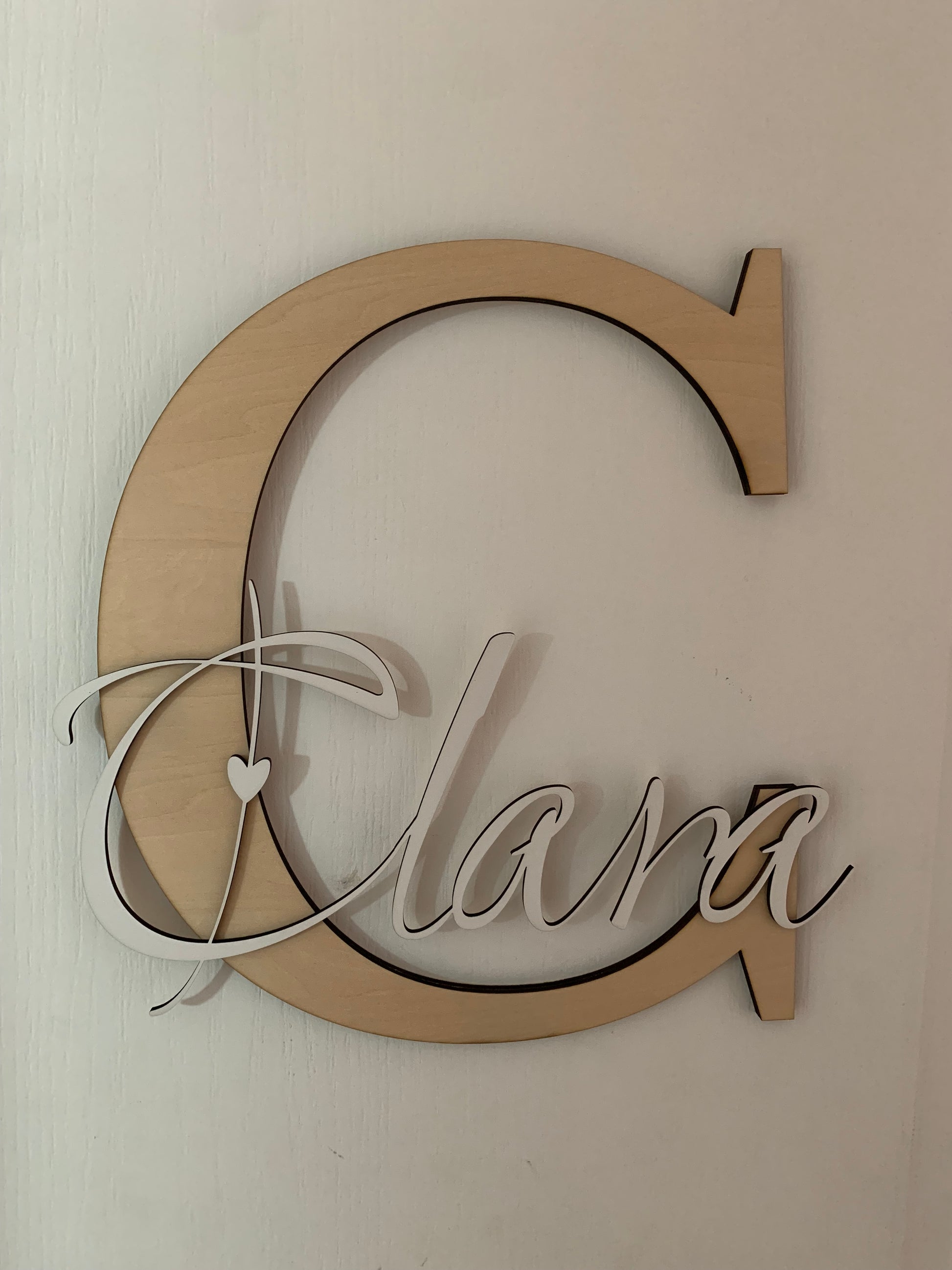 Découvrez notre sublime initiale en bois accompagnée du prénom en relief, parfaite pour décorer une porte de chambre ou créer une ambiance chaleureuse dans un cocon d’enfant.