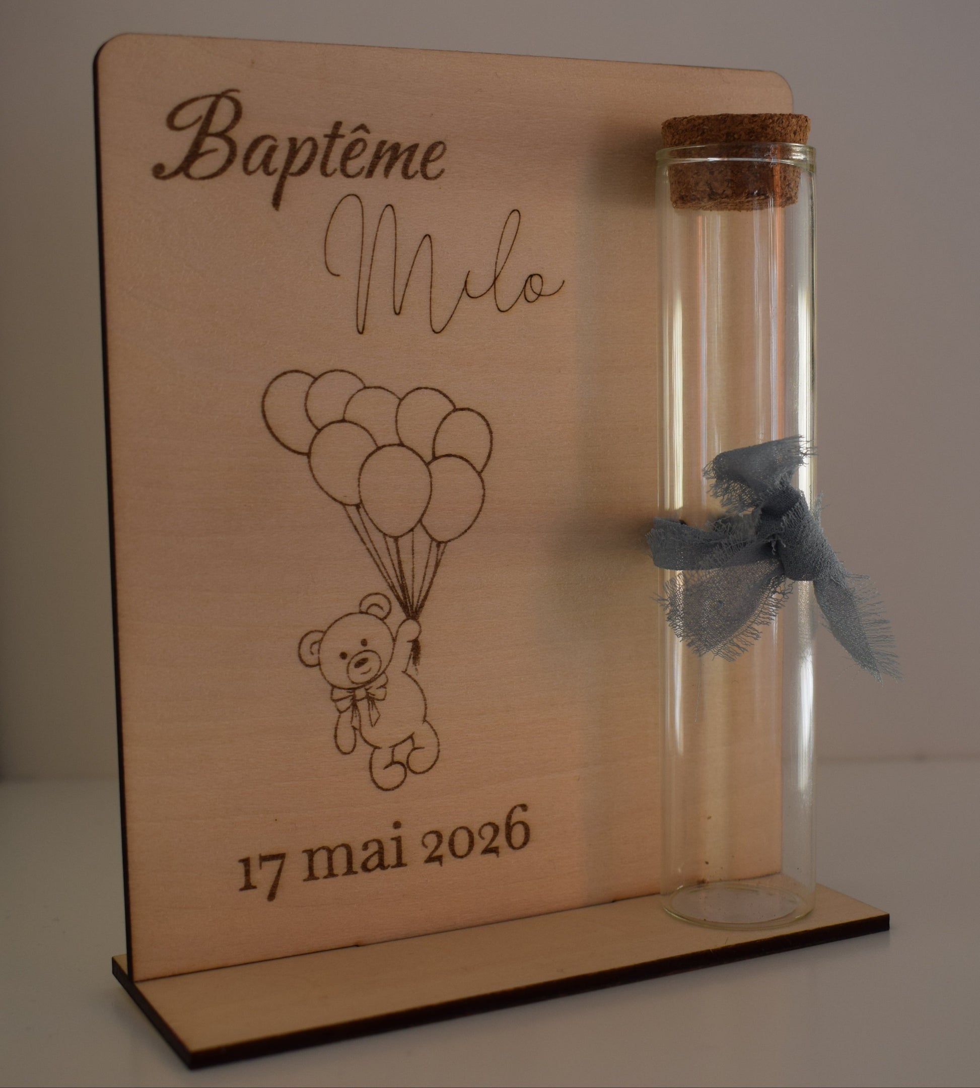 Support de baptême en bois - personnalisé Ourson Couleur au choix